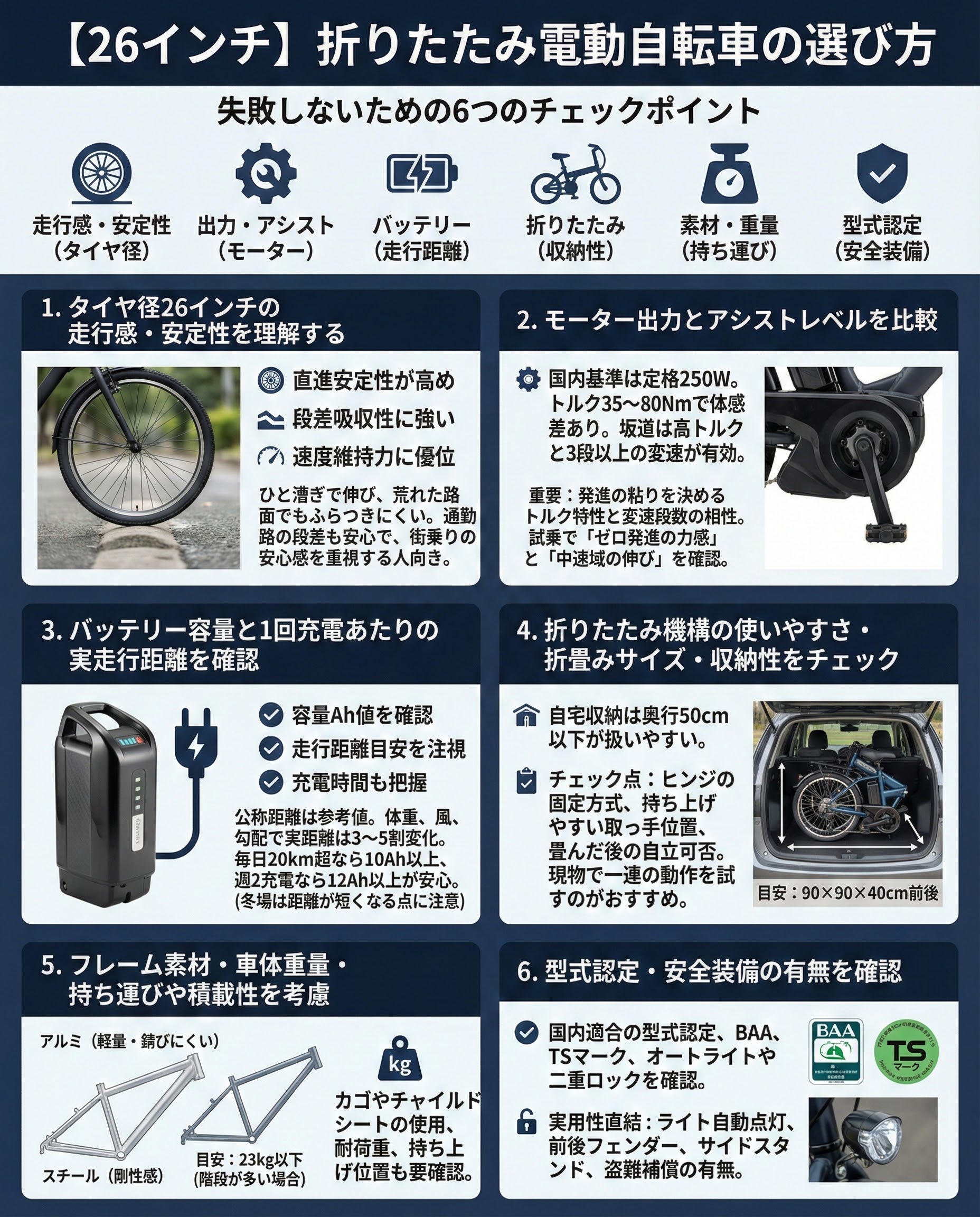 【26インチ】折りたたみ電動自転車の選び方タイヤ径26インチの走行感・安定性を理解する